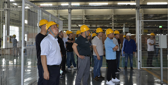 海宁市厨电五金行业协会代表一行在智能仓储自动化事业部总经理王振国陪同下,参观了太原市不锈钢产业园区生产基地、山西综改示范区唐槐产业园区生产基地、总部科技大楼和部分典型项目。