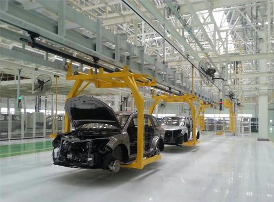 本总装生产线用于B60X(SUV)、MPV等车型的内饰装配、底盘装备、最终装配机性能检测、淋雨试验、出厂检查线等总装工序,生产线达产时双班年产12万辆汽车。