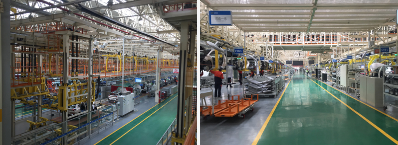 晋中吉利总装为我公司总承包项目,包括PBS线、内饰装配线、底盘线、最终装配线、车门线、OK线、淋雨线、商检线、发动机分装等,也包括工艺吊架及照明、KPK、工艺二次管线、全车间供电系统、全系统集成。输送线配置有CS控制系统。同时配置有信息管理系统。车型信息控制总体功能:PBS线车身信息通过超高频电子标签进行管理,为确保系统运行可靠,在转挂处都设有12寸触摸屏,也可人工录入车型信息,录入采用无线条码扫描枪扫取整车流程卡条码。整体配置有ANDON系统、AVI系统等。
