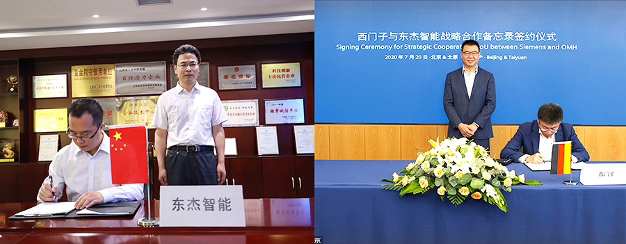 期间,东杰智能总经理王永红与西门子(中国)有限公司执行副总裁王海滨借助云平台实现云端签约,双方进行深入交流,对未来合作前景充满信心。