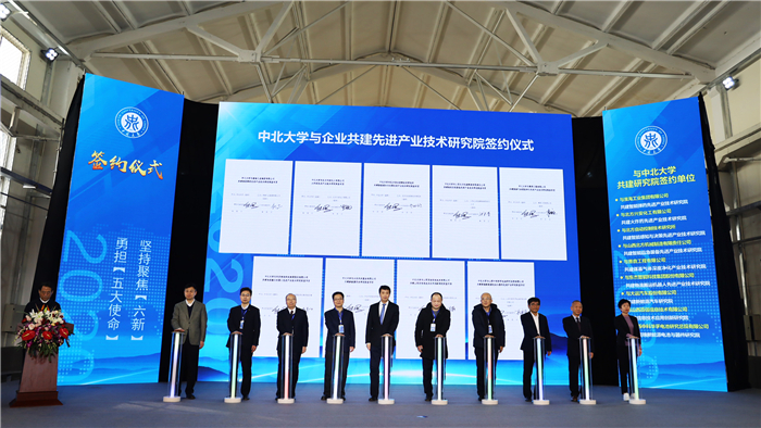 2020年12月23日,中北大学科技成果推介洽谈暨共建先进产业技术研究院签约揭牌仪式在中北大学隆重举行。山西省人民政府副省长王一新、中北大学党委书记沈兴全、中北大学校长熊继军出席会议,山西省政府办公厅主任赵国光主持,副省长王一新为共建先进产业技术研究院揭牌。