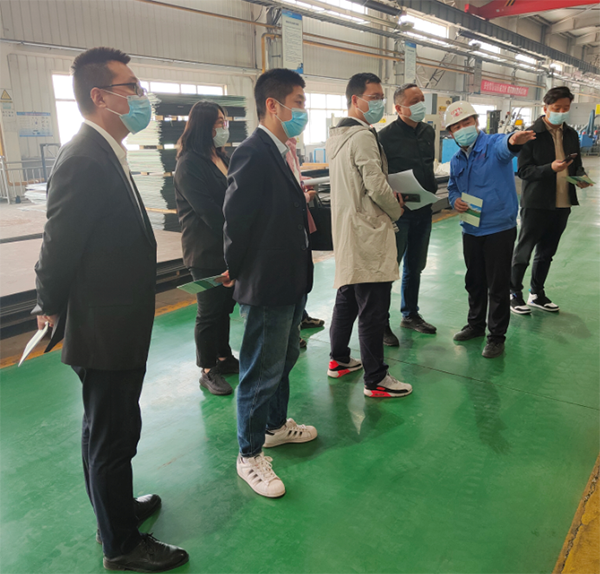 雷主任和李部长详细了解了东杰智能生产二部一期整体情况,就学生就业、实习场地、培训学习等方面做了了解和沟通,并针对校企合作进行了深入交流。