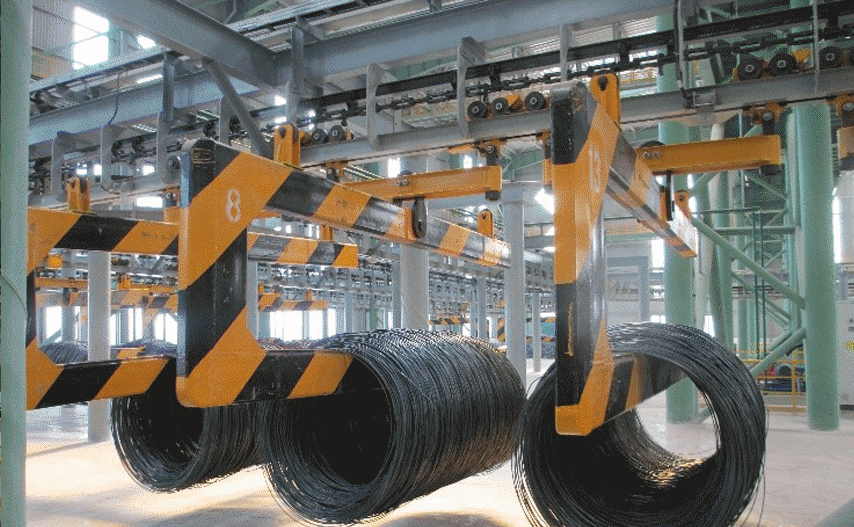 钢铁成品线材工厂智能物流整体解决方案实现了盘卷从生产下线、入库、存放、出库装车等物流及信息流的全程自动化管理。