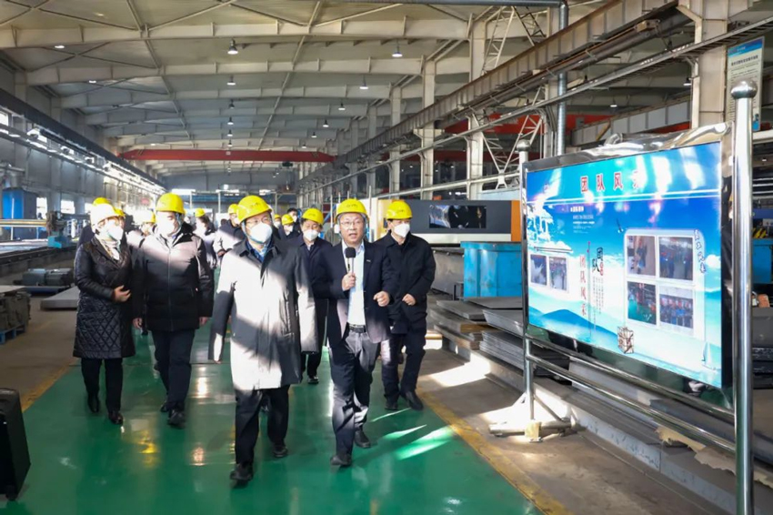 吴存荣带队参观了东杰智能智能制造二期生产基地,仔细听取了蔺万焕总经理的介绍,着重了解了东杰智能的公司业务发展情况、技术创新研发情况、经营情况及未来发展规划等内容。
