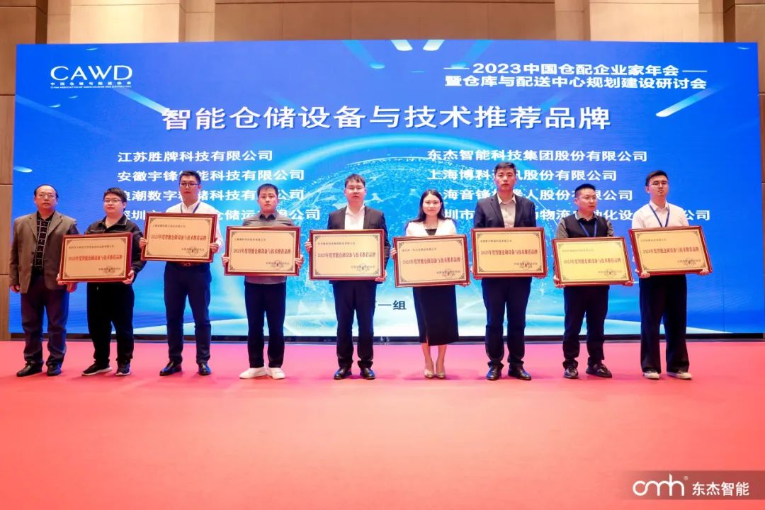 近日,2023 中国仓配企业家年会暨仓库与配送中心规划建设研讨会在宁波顺利召开,会上,东杰智能荣获“2023年度智能仓储设备与技术推荐品牌”荣誉。
