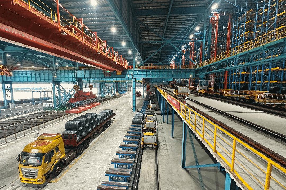 钢铁行业成品线材智能物流解决方案实现了盘卷从生产下线、入库、存放、出库装车等物流及信息流的全程自动化管理。